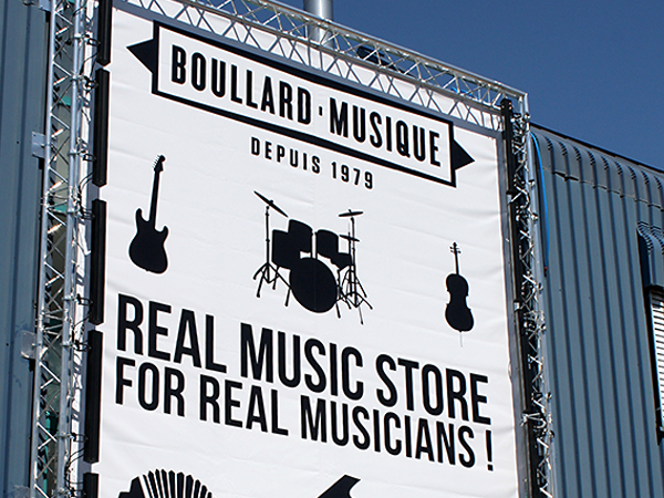 Pose de structure métallique et banderole PVC pour Boullard Musique